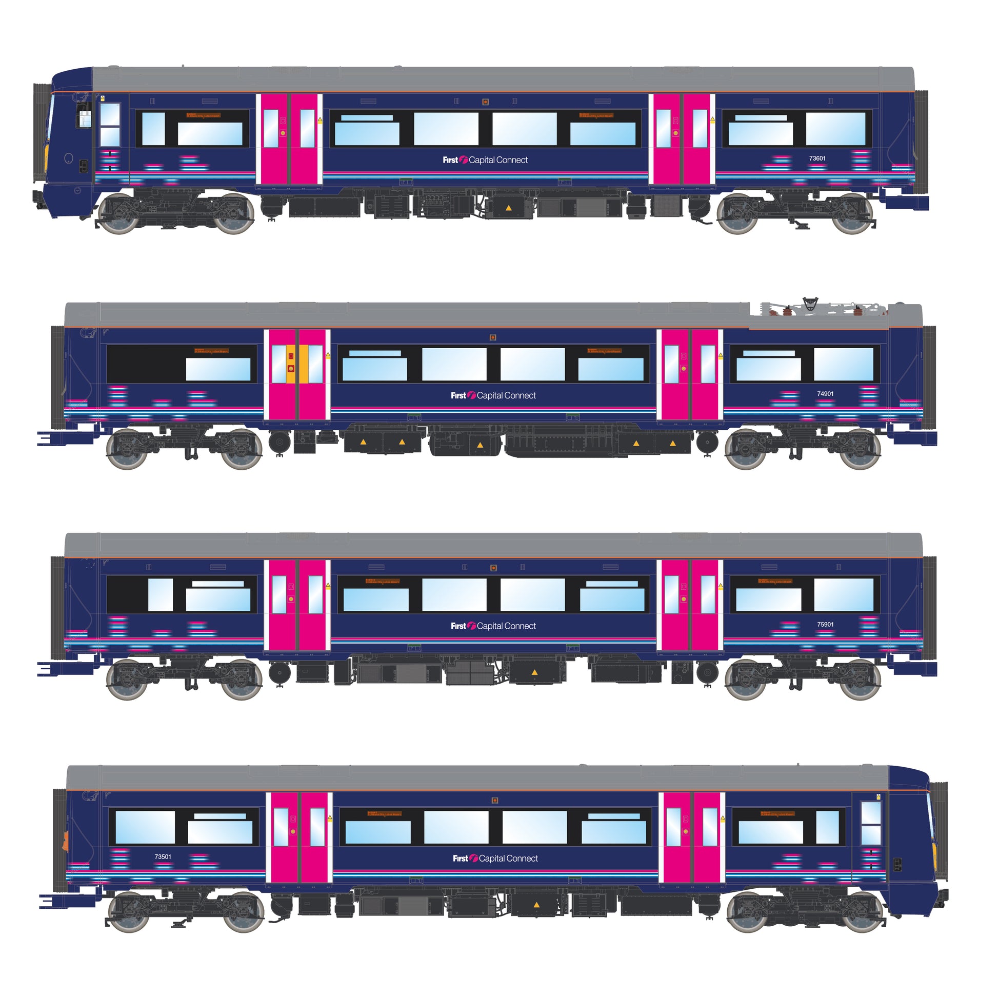 The Electrostar story spans a manufacturing period of 18 years, seven different classes, a multitude of sub-classes, three different manufacturersโ names above the door, over 650 sets in service and a geographical spread across southern Britain. Our development team identified that all variants of the Class 375, Class 377, Class 379 and Class 387 Electrostars will make up the tooling suite of our first ever multiple unit. We have partnered with our friends Rails of Sheffield to bring you a new benchmark in British outline multiple units
